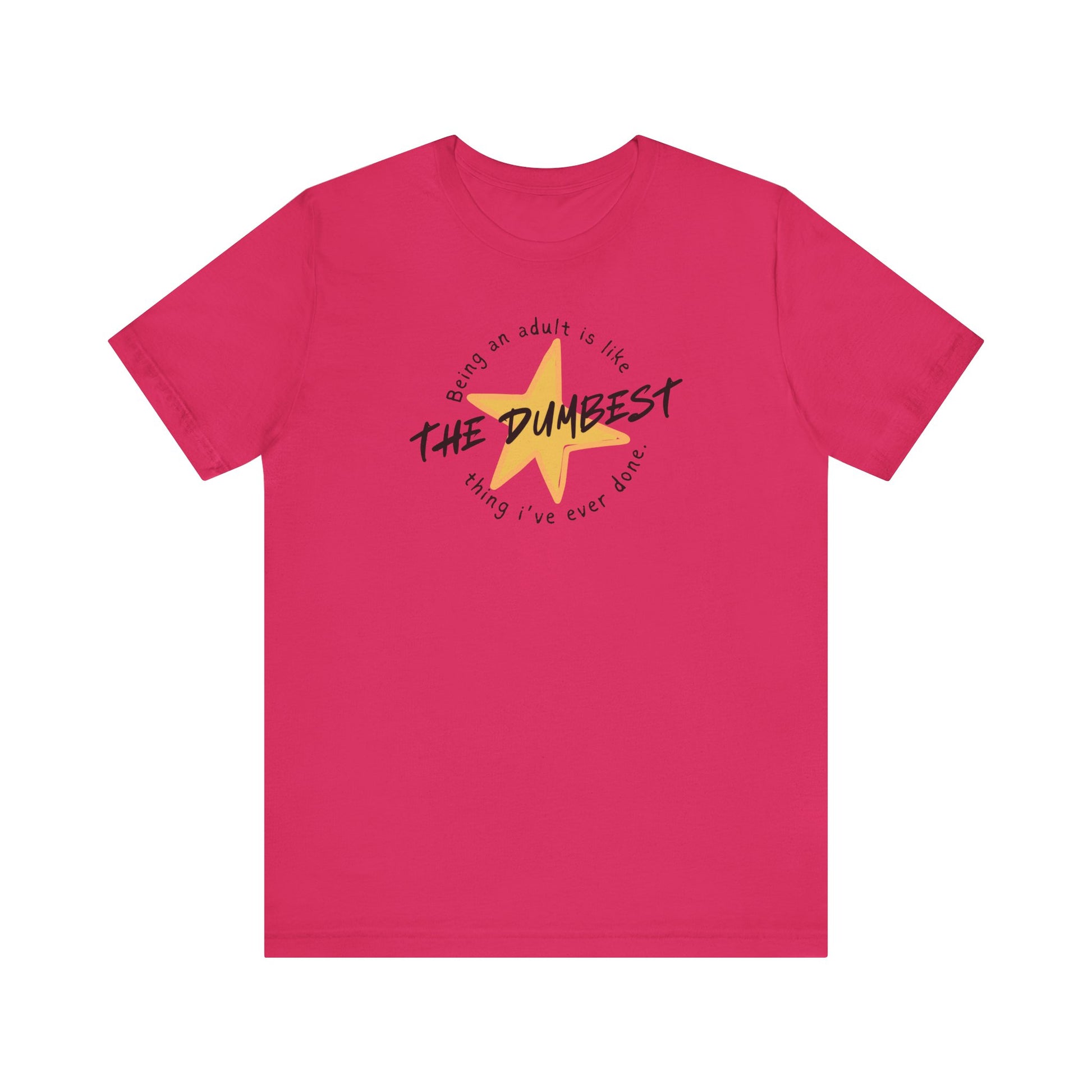 This classic unisex jersey short sleeve tee fits like a well-loved favorite. Soft cotton and quality print make users fall in love with it over and over again. These t-shirts have-ribbed knit collars to bolster shaping. The shoulders have taping for better fit over time. Dual side seams hold the garment's shape for longer.
